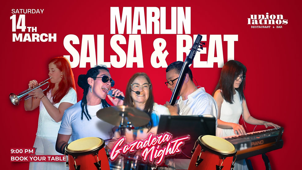 Turn up your Saturday at Gozadera Night. Live Latin music by Marlin Salsa & Beat featuring DJ Asukha, salsa and tropical rhythms, and a dance floor full of energy. Saturday, March 14 is all about music, movement, and pure gozadera.