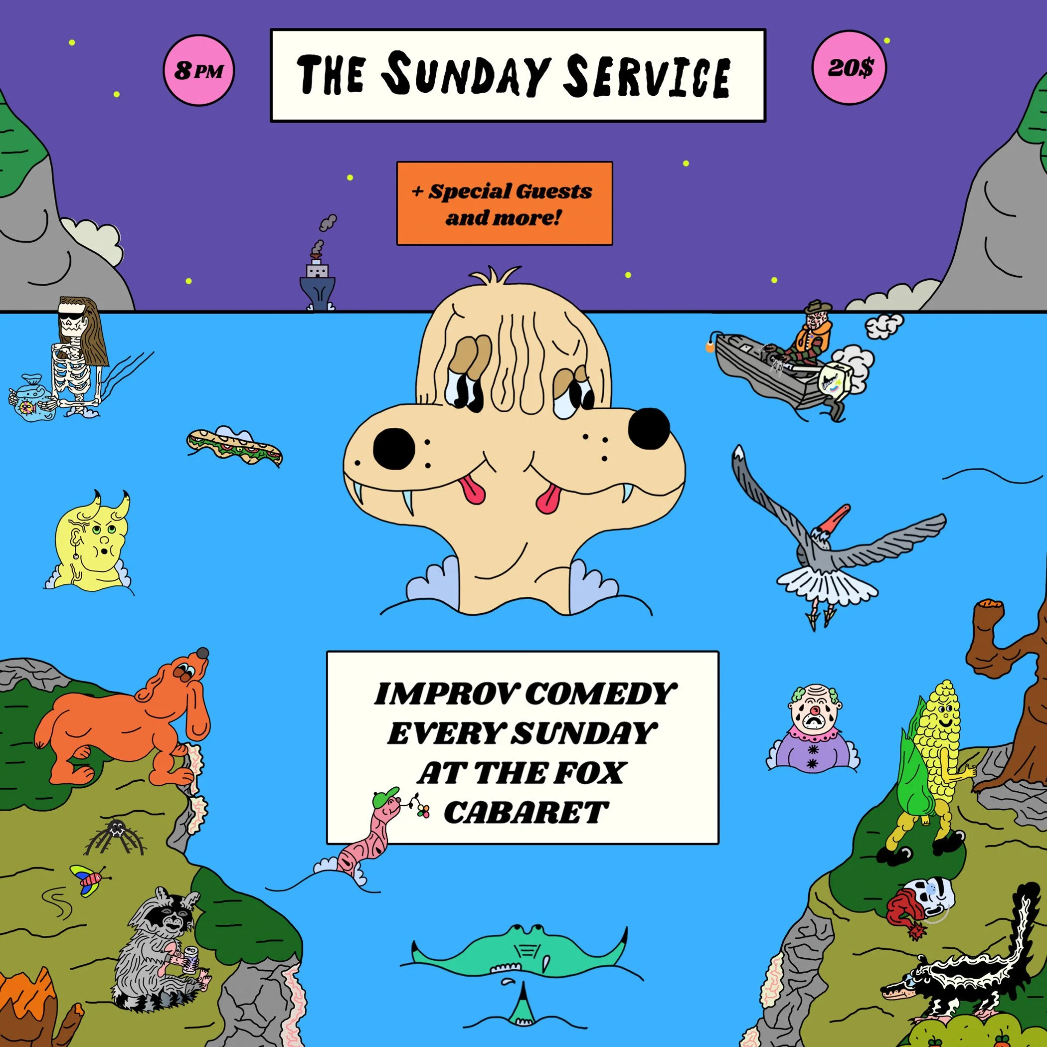 Meet The Sunday Service, Vancouver’s standout improv comedy group, performing weekly since 2005. Featuring a lineup of skilled performers including Taz Van Rassel, Ryan Beil, Kevin Lee, Mark Chavez, Aaron Read, and Caitlin Howden, The Sunday Service is known for transforming everyday suggestions into captivating comedic experiences, and they are celebrated for their high-quality, absurd comedy!